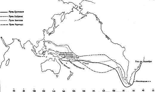 Путешествия французов были прерваны вторым путешествием Кука, так успешно поработавшего для разрешения мучившей французов проблемы, что следующий французский исследователь, Лаперуз, великодушно заявил о нем: «Кук сделал столько, что не оставил мне никакого дела,— разве только восхищаться им».