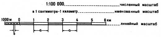 Именованный масштаб — пояснение, указывающее соотношение длин линий на карте и на местности. При М= 1:100 000 1 см на карте соответствует 1 км.