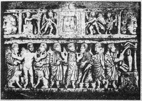 Раннехристианский саркофаг IV в. со сценами из Писания. Рим, катакомбы св. Калликста (Baruffa, 1993).