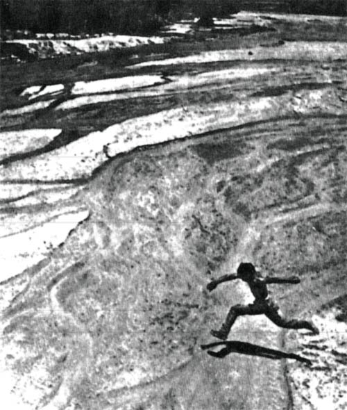Фото 13. Это песчаное русло временного водотока большую часть времени сухое или почти сухое. При сильных ливнях по нему течет мутный поток, в котором тонут животные, а их трупы уносятся течением и быстро погребаются в аллювии.