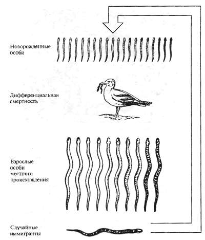Аналогично положение при борьбе с «вредными» насекомыми. Внутри популяции насекомые часто оказываются неоднородными по устойчивости к ядохимикатам (даже в линиях, полученных от отдельных особей мух, выживаемость после действия ДДТ колеблется от 0 до 100%). Эта наследственная неоднородность служит основой для повышения их популяционной устойчивости к ядохимикатам. После воздействия ядов выживают лишь устойчивые особи, они в результате реализации части потенциала размножения (см. гл. 9) образуют популяции, устойчивые к действию ядов.