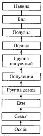 Рис. 12.2. Схема строения вида как многоуровневой иерархической системы (по А.С. Баранову, 1986)