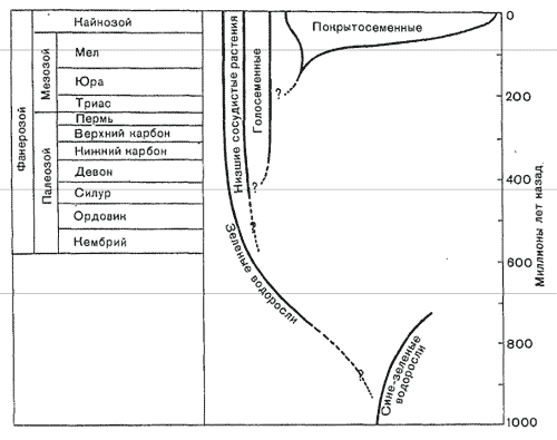 Прежде чем мы перейдем к рассмотрению эволюции животного мира, целесообразно восстановить основные события истории развития растений, помня о том, что без растений животный мир не смог бы успешно развиваться на суше. В результате изучения ископаемых остатков можно установить следующие основные моменты в развитии растений: