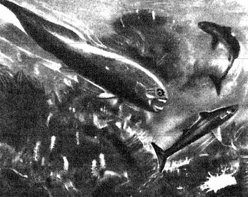 Выше мы описывали особенности формы и строения тела животных, подобных рыбам. И все же остатков организмов, которые могли быть предшественниками рыб, не было обнаружено. Наиболее обоснованное предположение (хотя это всего лишь предположение) состоит в том, что объектом нашего поиска является предок современных морских ежей и звезд, имевших продолговатое мягкое тело, лишенное скелета, не имевший глаз, но обладавший бесчелюстным ртом для всасывания частиц пищи из придонного ила. Одним из оснований для такого предположения послужил вид всех остатков ископаемых рыб, принадлежащих к более ранней эпохе, - силуру (в ордовикских слоях были найдены только костные пластинки). Остатки свидетельствуют о том, что рыбы имели бесчелюстные сосущие рты и не имели плавников. Их тела были одеты довольно гибким покровом из костяных чешуек, а то, что, их остатки были обнаружены в отложениях рек и озер, но не морей, доказывает факт переселения этих примитивных рыб вслед за водорослями из морей в реки и озера. На основании указанных фактов можно сделать два заключения. Во-первых, удлиненное тело могло развиться, приспосабливаясь к условиям постоянных речных потоков. Во-вторых, довольно грубые пластинки костяной брони служили не для защиты от хищников (которыми в это время могли быть «морские скорпионы»), а в качестве оболочки, препятствовавшей избыточному проникновению пресной воды через поры внутрь тела. Такая оболочка, вероятно, была необходима для животного, предки которого всегда жили в соленой воде и у которого химизм тела был приспособлен к соленой воде.