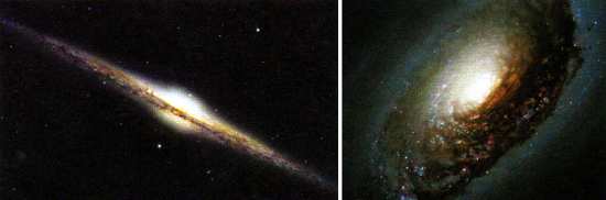 Примечательные галактики созвездия Волосы Вероники: NGC 4565 (слева) и М64 «Чёрный Глаз» (справа). Фотографии сделаны с помощью мощных телескопов