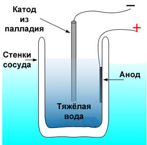 Сообщение об осуществлении реакции ядерного синтеза при комнатной температуре было сделано Мартином Флейшманом из Саутгемптонского университета (Великобритания) и американцем Б. Стэнли Понсом из Университета шт. Юта на совместной пресс-конференции. По их словам, им удалось зарегистрировать реакцию ядерного синтеза во время электролиза с использованием катода из палладия и тяжелой воды (окись дейтерия) в качестве электролита. Палладий способен поглощать значительное количество дейтерия, изотопа водорода. Как отмечают Флейшман и Понс, атомы дейтерия задерживаются в палладии, где происходит их ядерный синтез с образованием более тяжелых ядер.