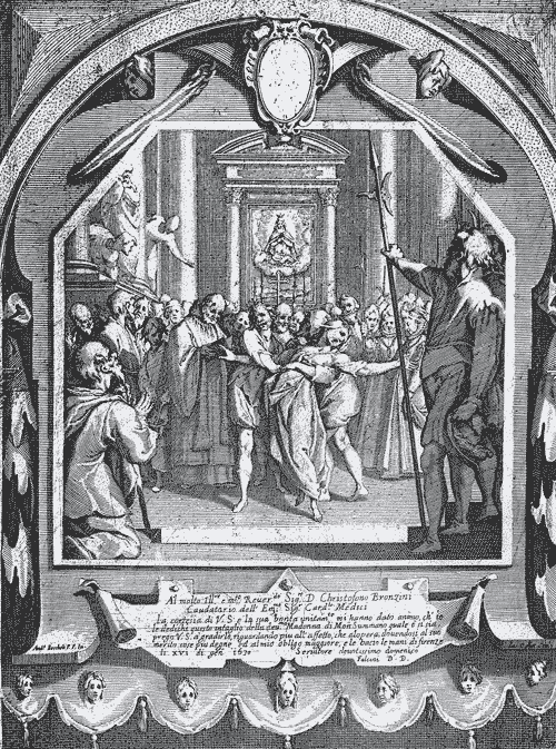 Гравюра изображает сеанс экзорсизма, проведенный Жаком Калло в 1630 году