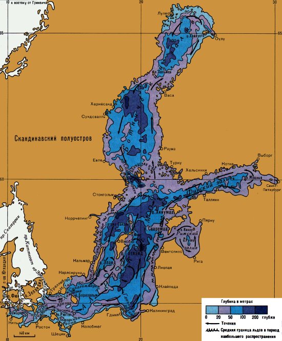 Рельеф дна и течения Балтийского моря