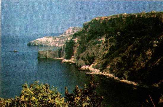 Расположенное в глубине материка, Черное море (вместе с Азовским) — наиболее обособленная часть Мирового океана. На юго-западе оно сообщается с Мраморным морем через пролив Босфор, граница между морями проходит по линии м. Румели — м. Анадолу. Керченский пролив соединяет Черное и Азовское моря, границей между которыми служит линия м. Такиль — м. Панагия.