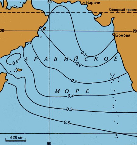 Особенности структуры и циркуляции вод Аравийского моря в значительной степени способствуют тому, что это море относится к высокопродуктивным районам Мирового океана.