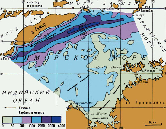 Рельеф дна и течения Тиморского моря