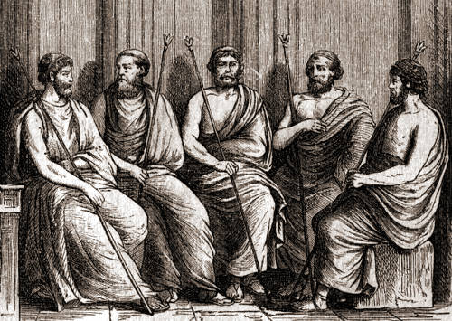 Эфоры (досл. «блюстители») — коллегия высших должностных лиц в Спарте. Избирались ежегодно в количестве 5 человек собранием граждан. Появление эфоров относится к середине VIII в. до н.э. Осуществляли высший надзор и контроль. Созывали герусию и апеллу, председательствовали в них, заведовали казной, объявляли набор войска, назначали военачальников, руководили судопроизводством и другое. Наблюдали за действиями царей и должностных лиц, за поведением граждан, за жизнью зависимого населения — периэков и илотов.