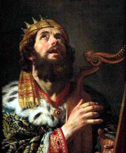 Давид (около 1043 — около 973 до н.э.), второй царь всех племен Израиля. Давид был младшим сыном Иессея из селении Вифлеем в Иудее. Юношей Давид прославился, одолев филистимлянина Голиафа. Причем развитие библейского сюжета этой битвы очень напоминает фольклорные мотивы. Никто не хотел сражаться с великаном, тогда царь обещал храбрецу дочь и полцарства в придачу. Давид, привезший своим братьям хлеб, вызвался участвовать в поединке. Его высмеяли старшие братья. Но царь разрешил ему принять вызов, и он победил и женился на дочери царя Саула Мелхоле. Его победы в войнах с филистимлянами привели к большой популярности у народа. Саул возненавидел Давида, и тот бежал к филистимлянам. После гибели Саула в битве Давид провозгласил себя царем родного племени (колена) Иуды. После междоусобной борьбы уничтожившей всех соперников Давида, он стал царем всех колен Израиля. После этого он одолел филистимлян, сделал Иерусалим, отвоеванный у иевусеев, столицей Израиля. Давид умер в возрасте 70 лет после тридцати трех лет царствования в Иерусалиме над всем Израилем. Он основал династию, царствовавшую на протяжении почти 500 лет, до времен Зоровавеля, который около 538 до н.э. возглавил возвращение израильтян в Палестину по окончании вавилонского плена.